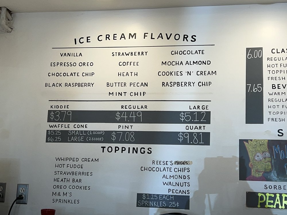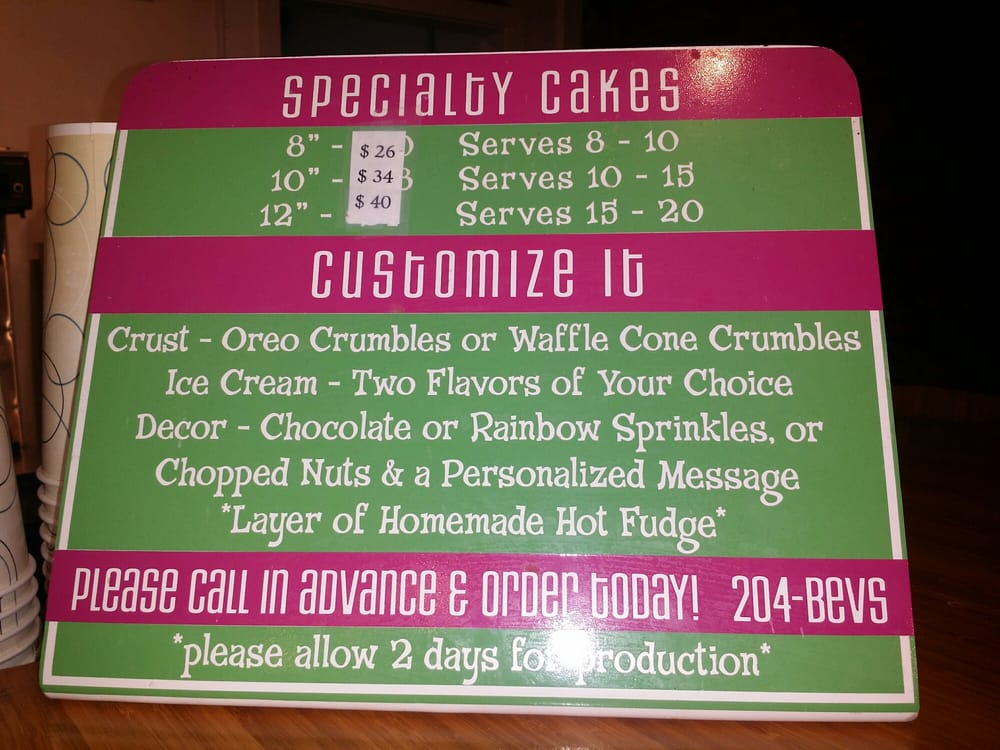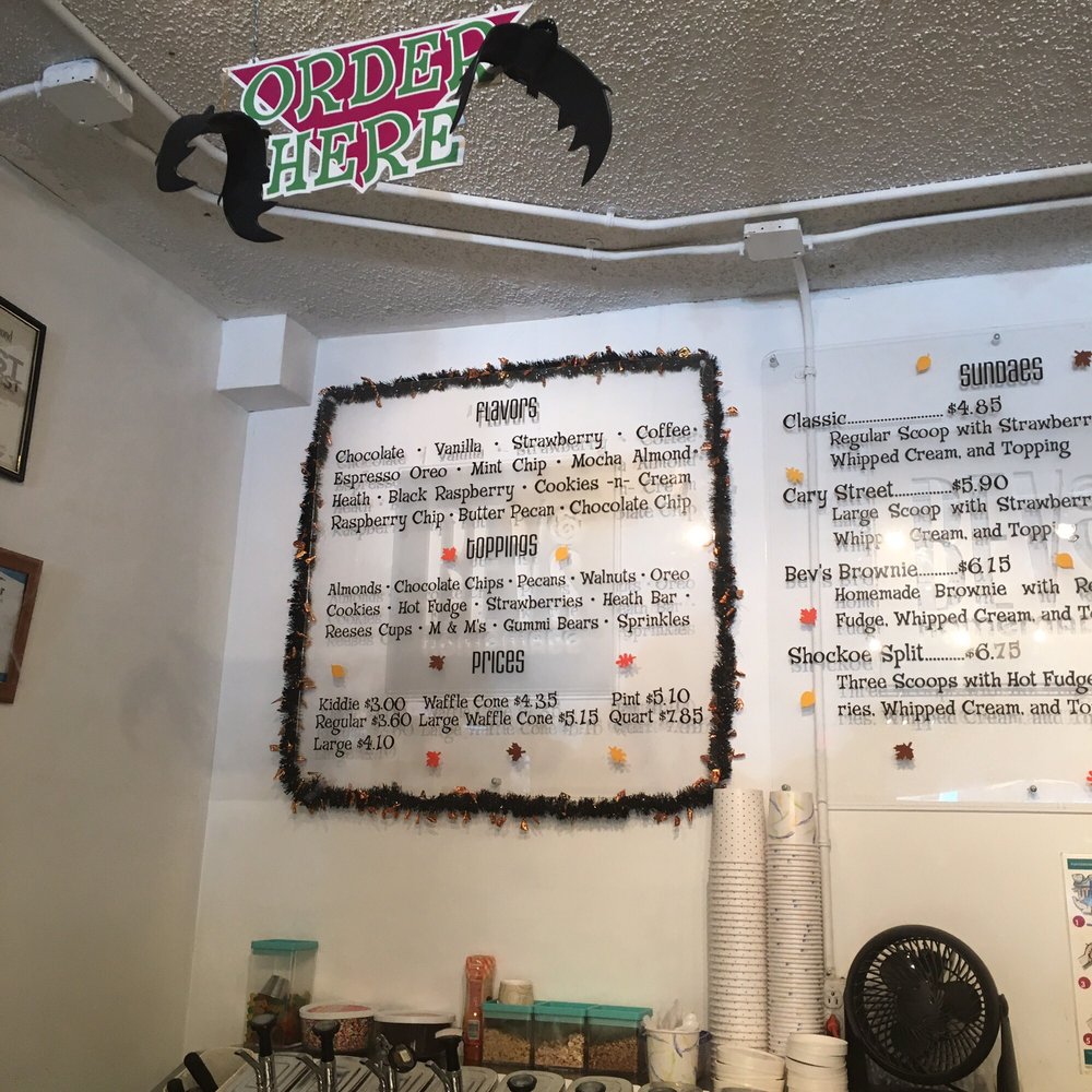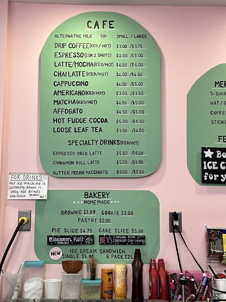 Bev's Homemade Ice Cream & Cafe Menu